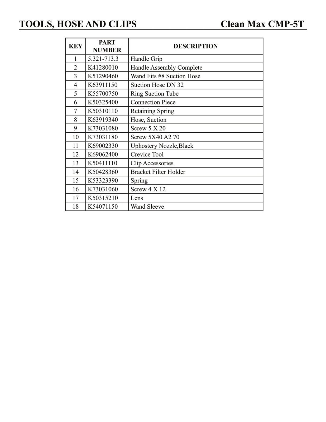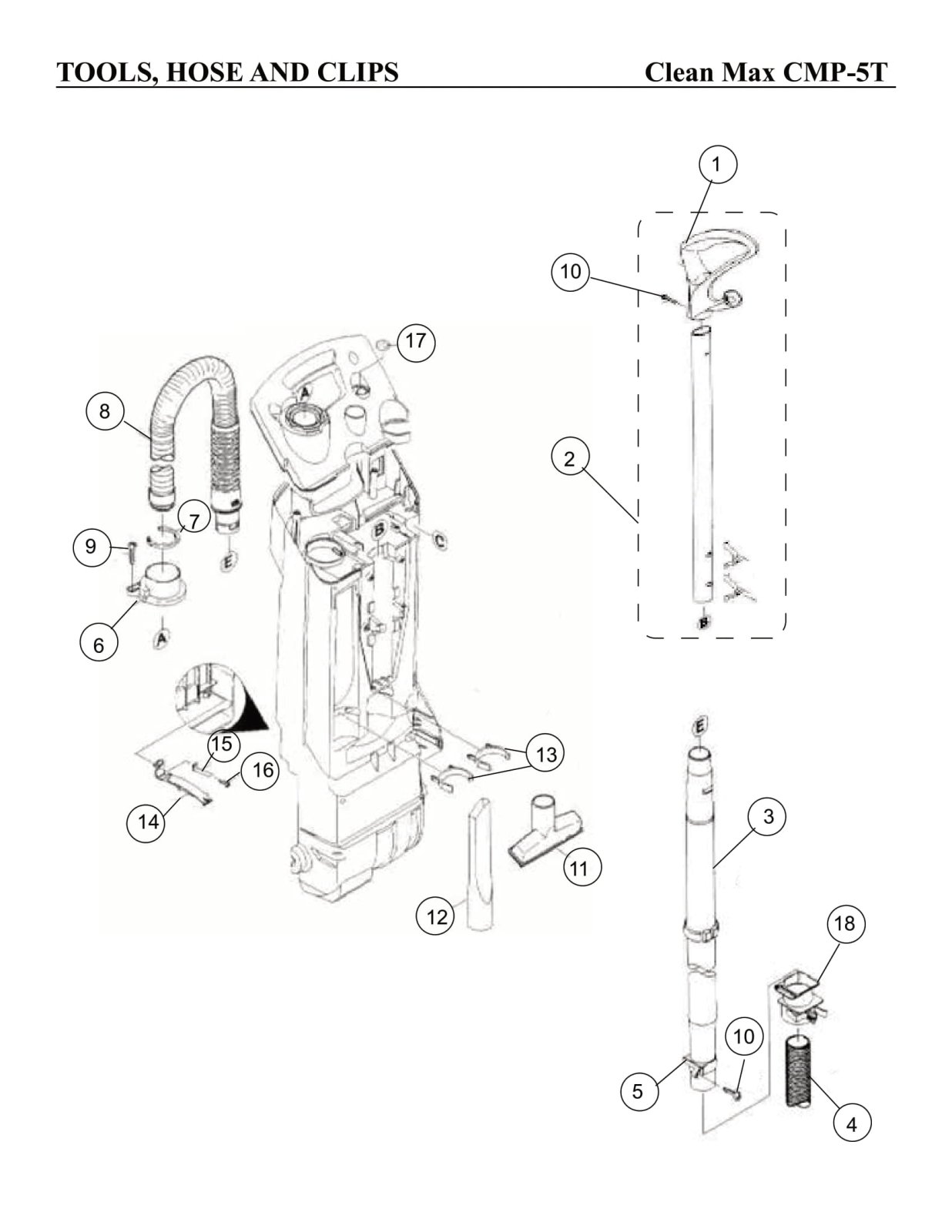 CleanMax Parts - Model CMP-5T - Tools, Hose & Clips