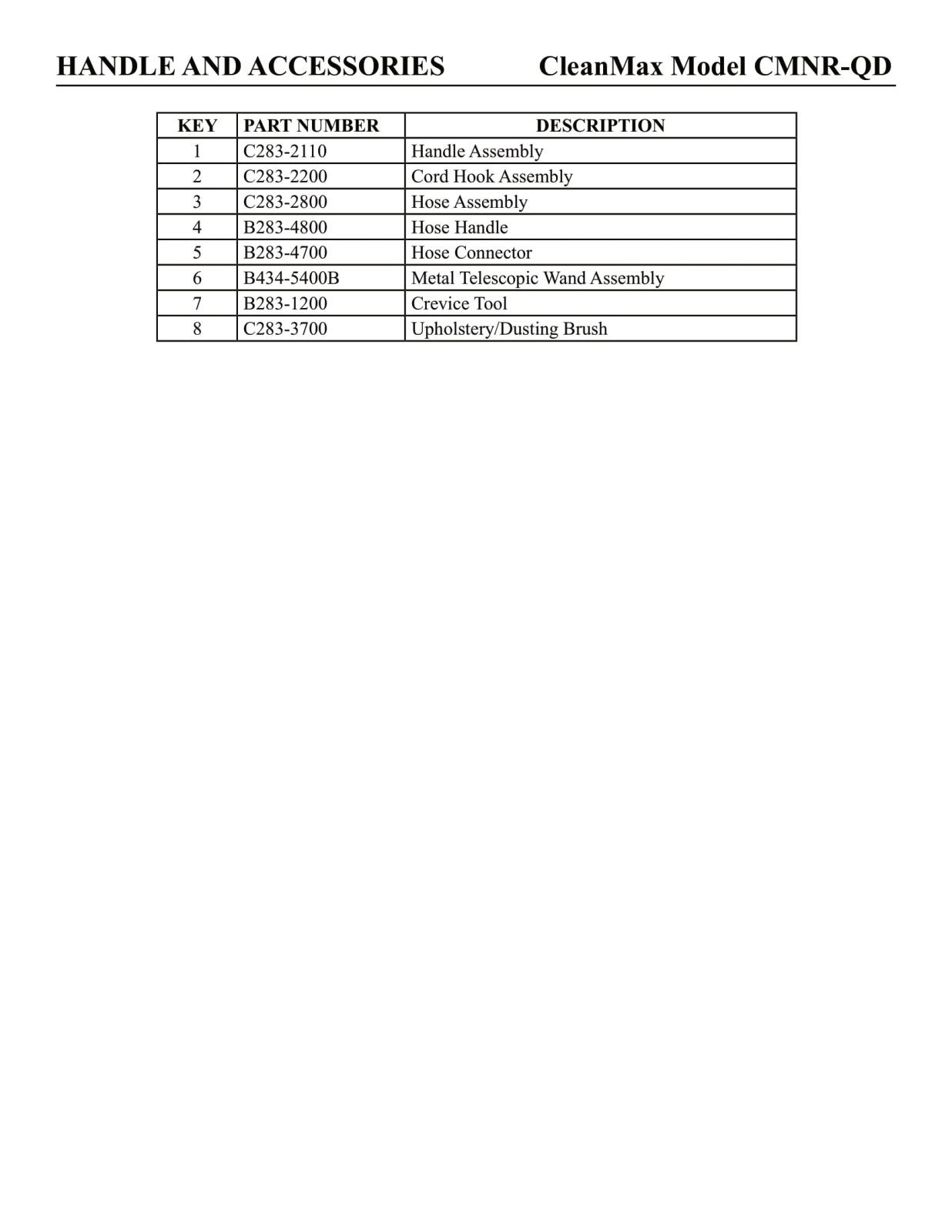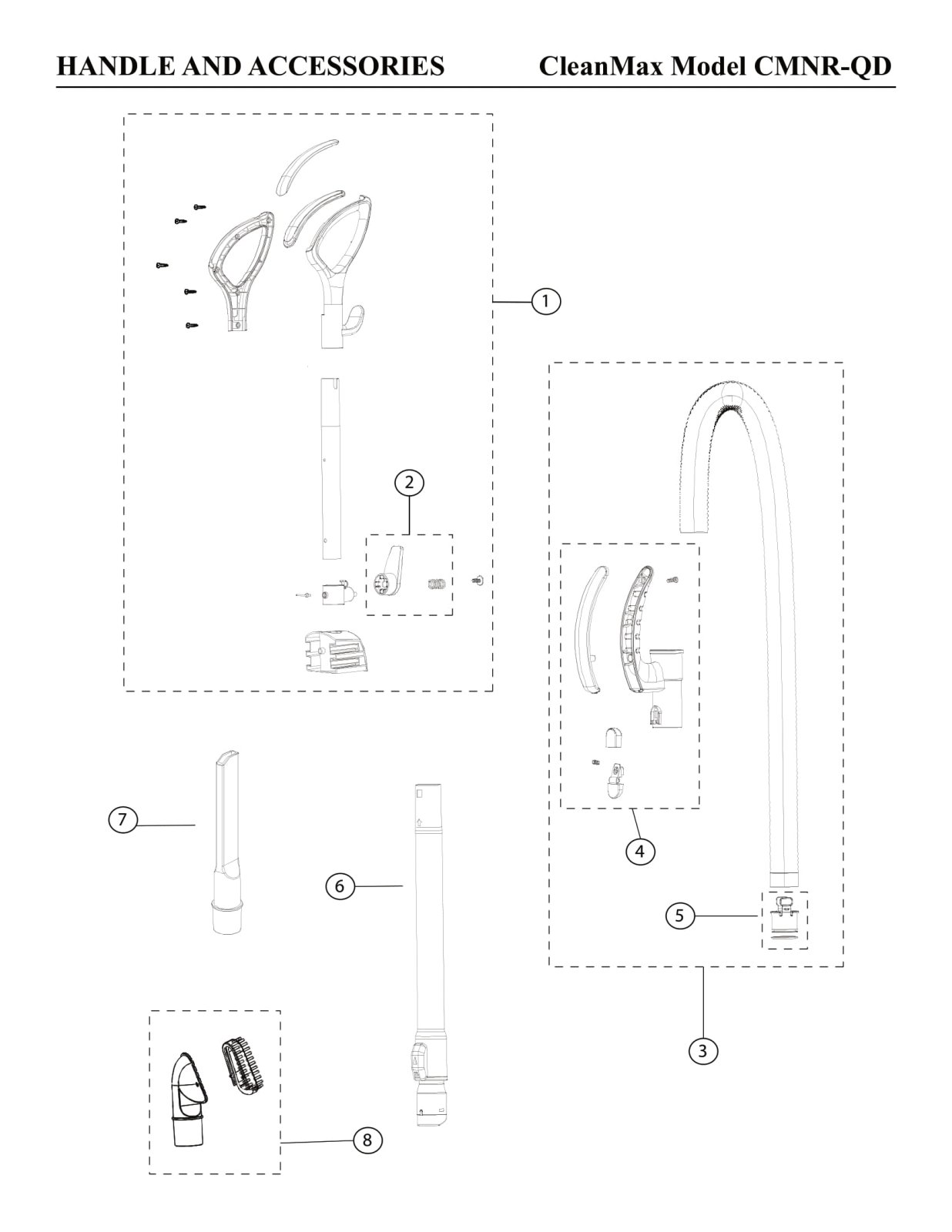 CleanMax Parts - Model CMNR-QD - Handle & Accessories