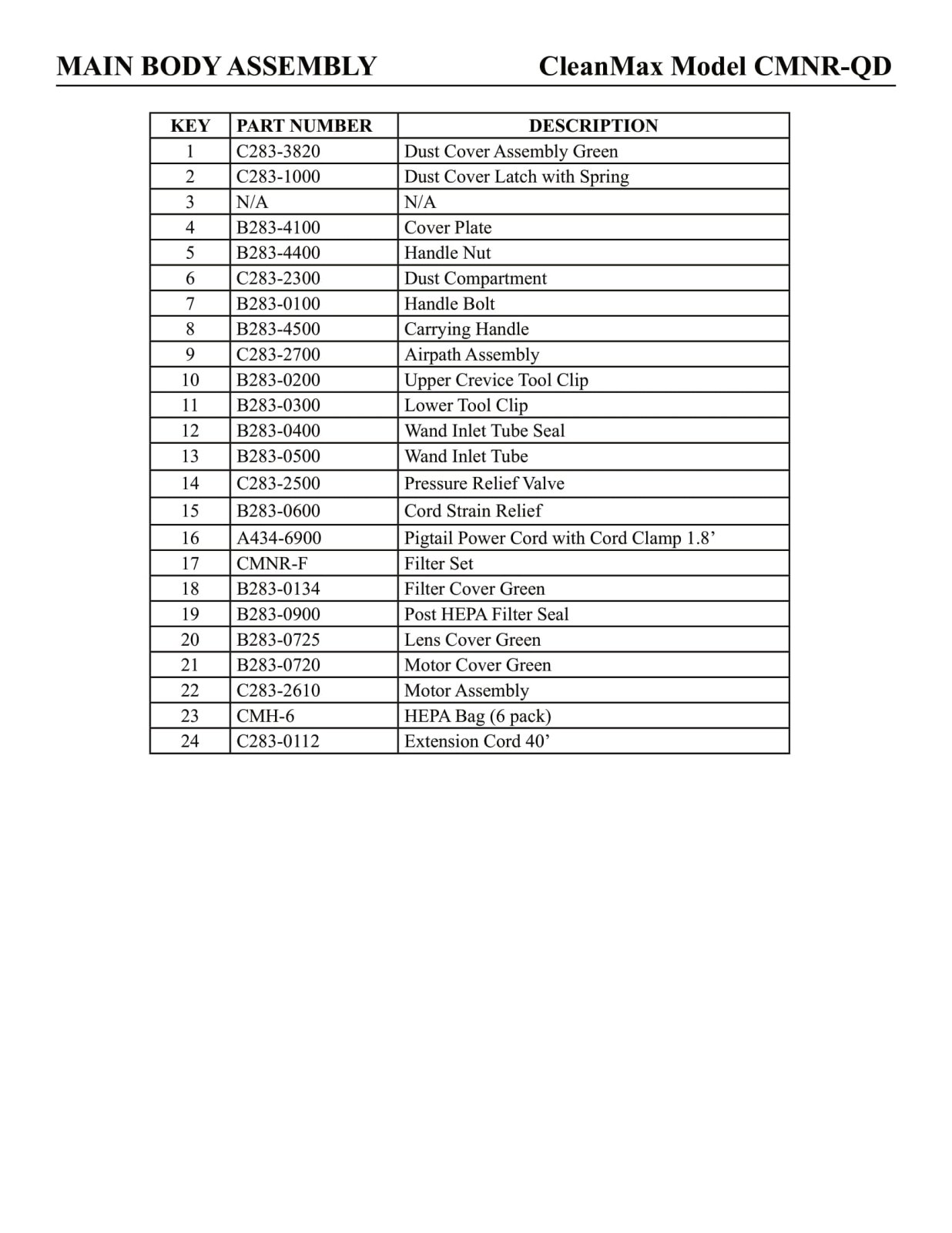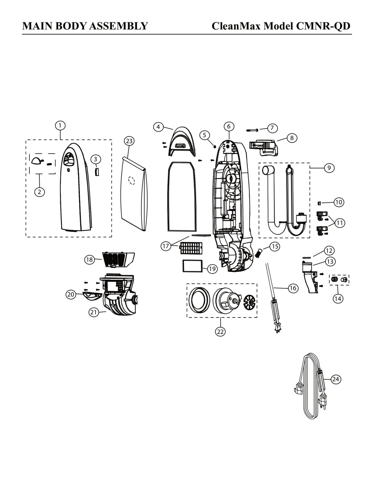 CleanMax Parts - Model CMNR-QD - Main Body Assembly
