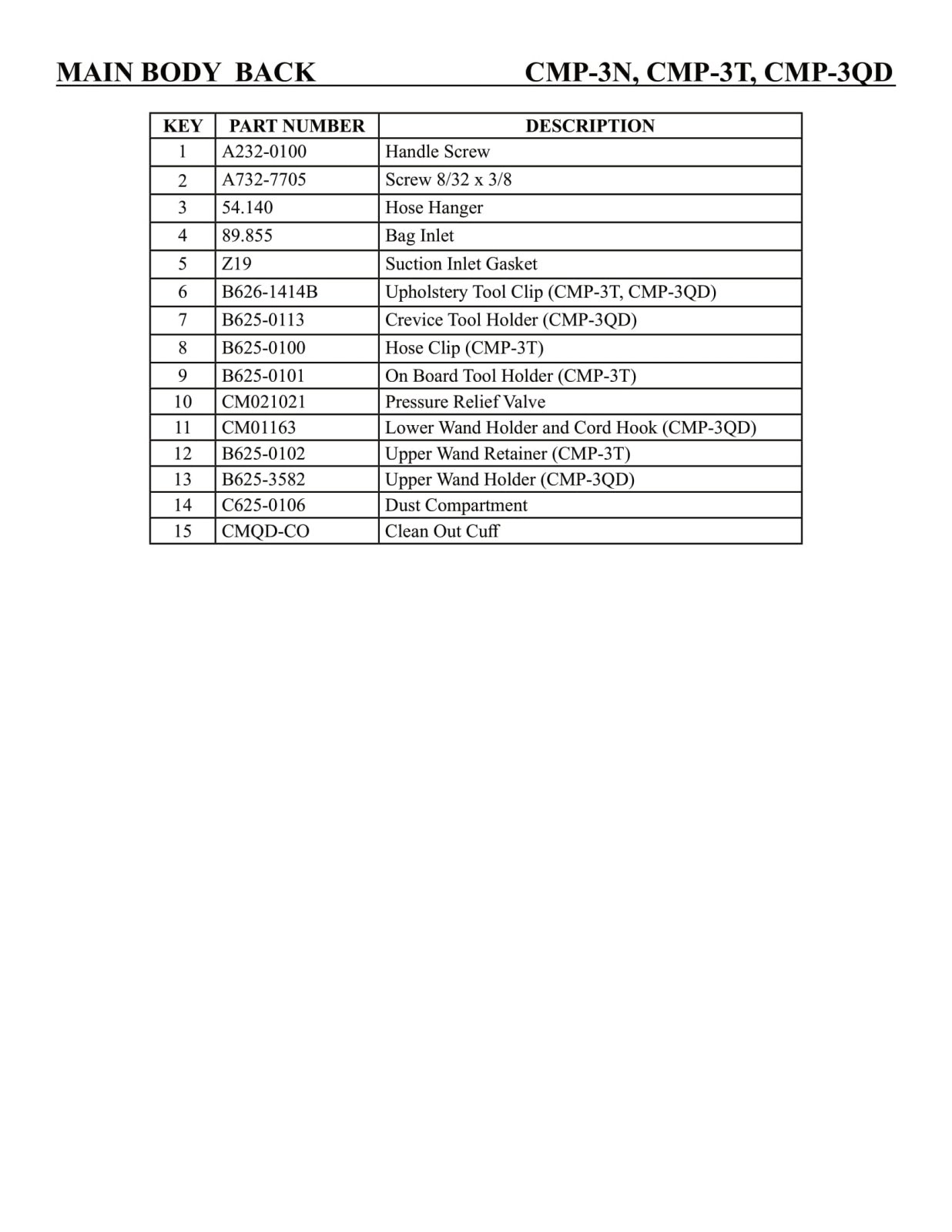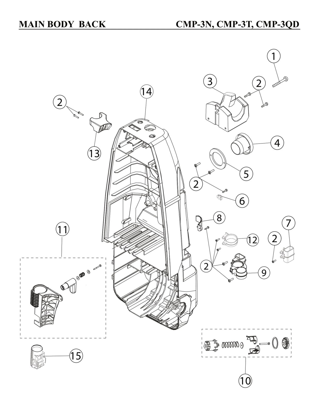 CleanMax Parts - Model CMP-3N / CMP-3T / CMP-3QD - Main Body Back