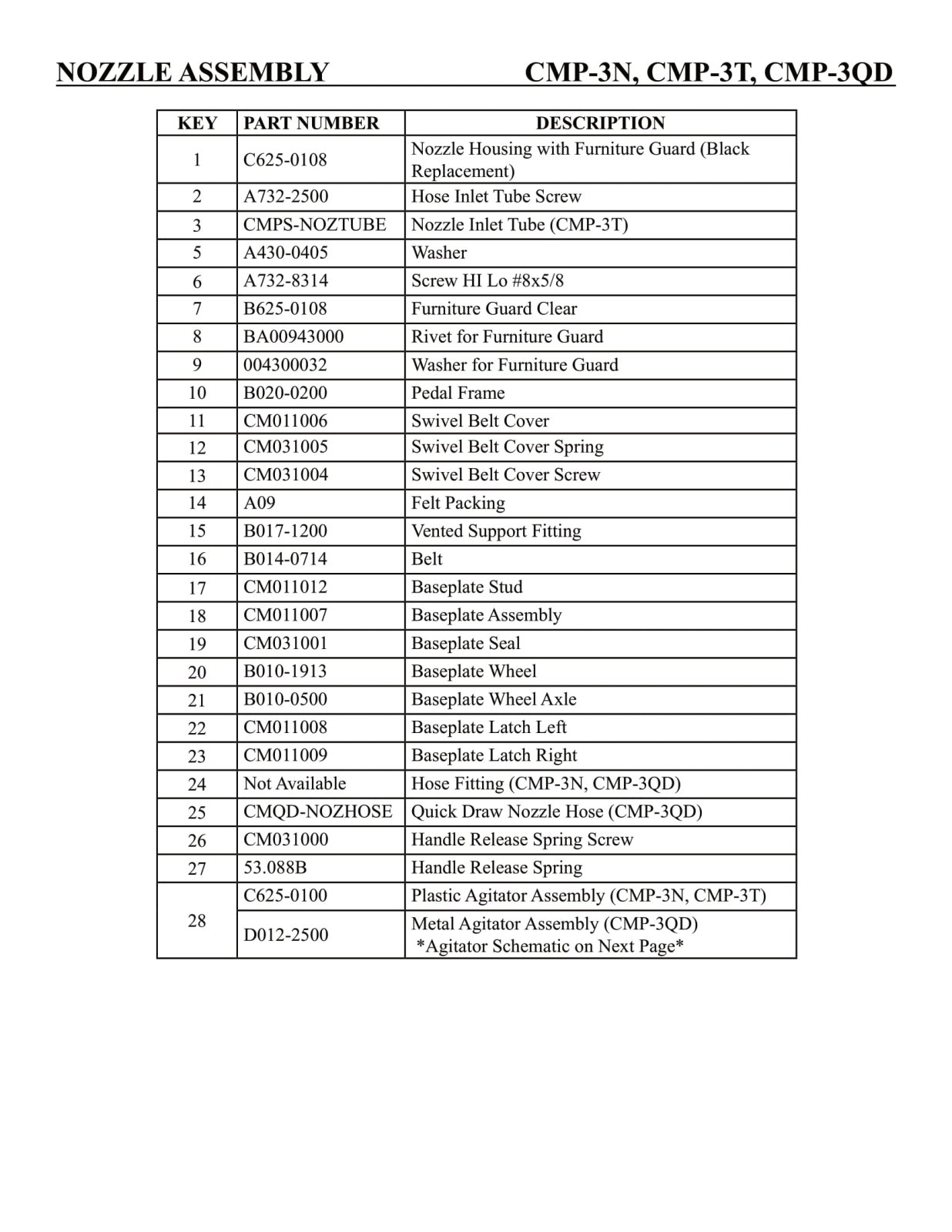 CleanMax Parts - Model CMP-3N / CMP-3T / CMP-3QD - Nozzle Assembly