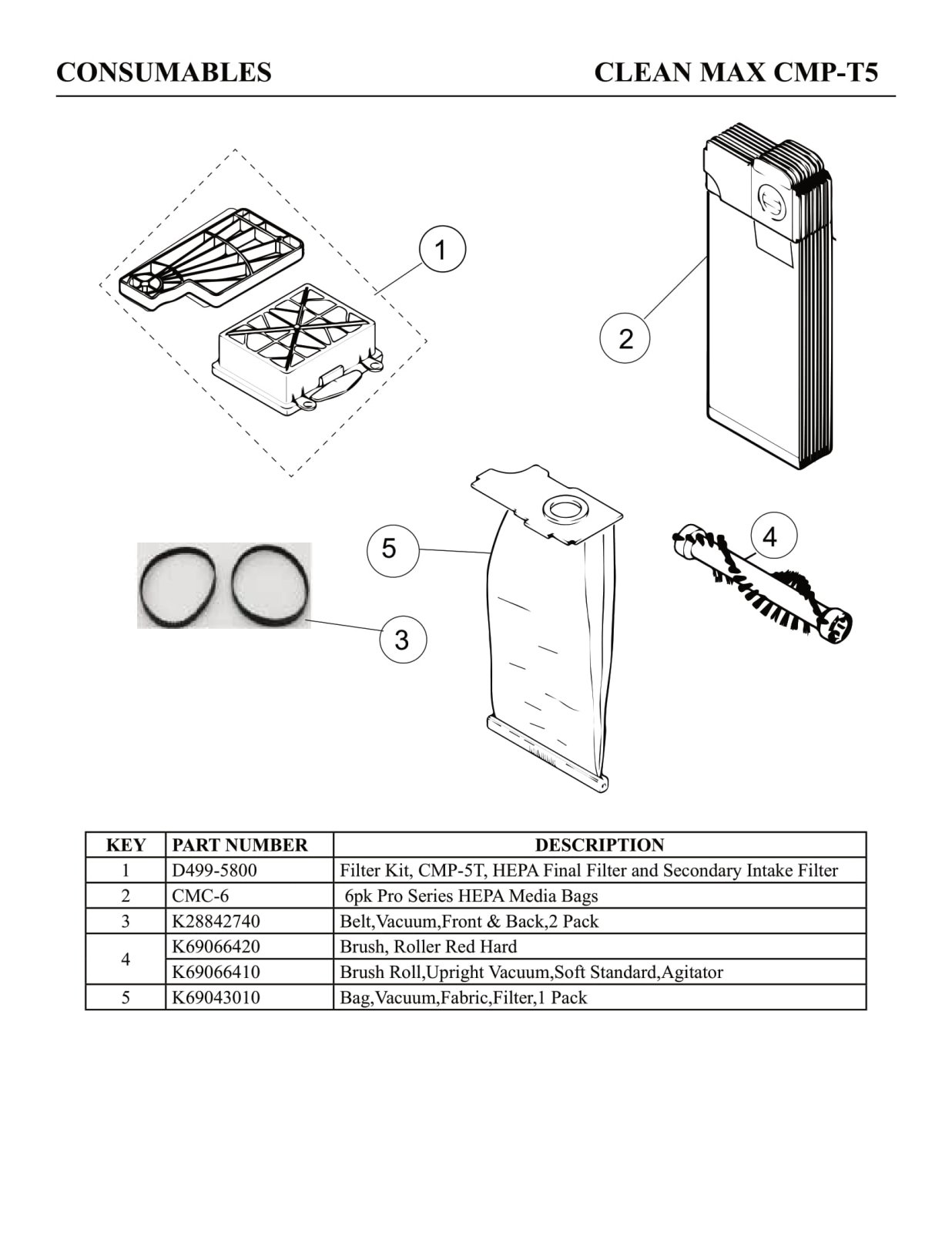 CleanMax Parts - Model CMP-5T - Consumables