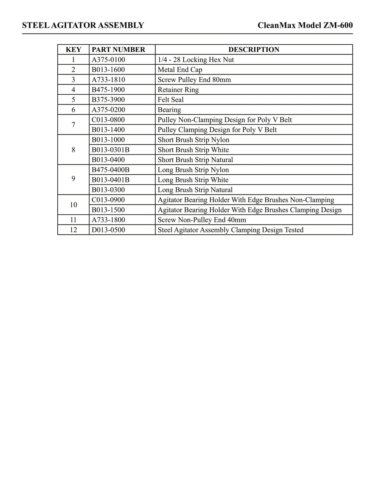 CleanMax Parts - Model ZM-600 - Steel Agitator Assembly