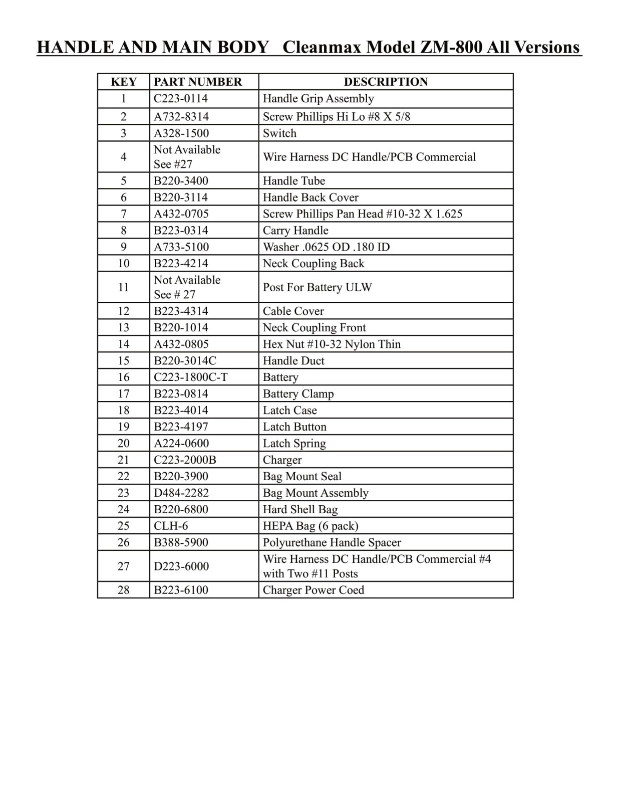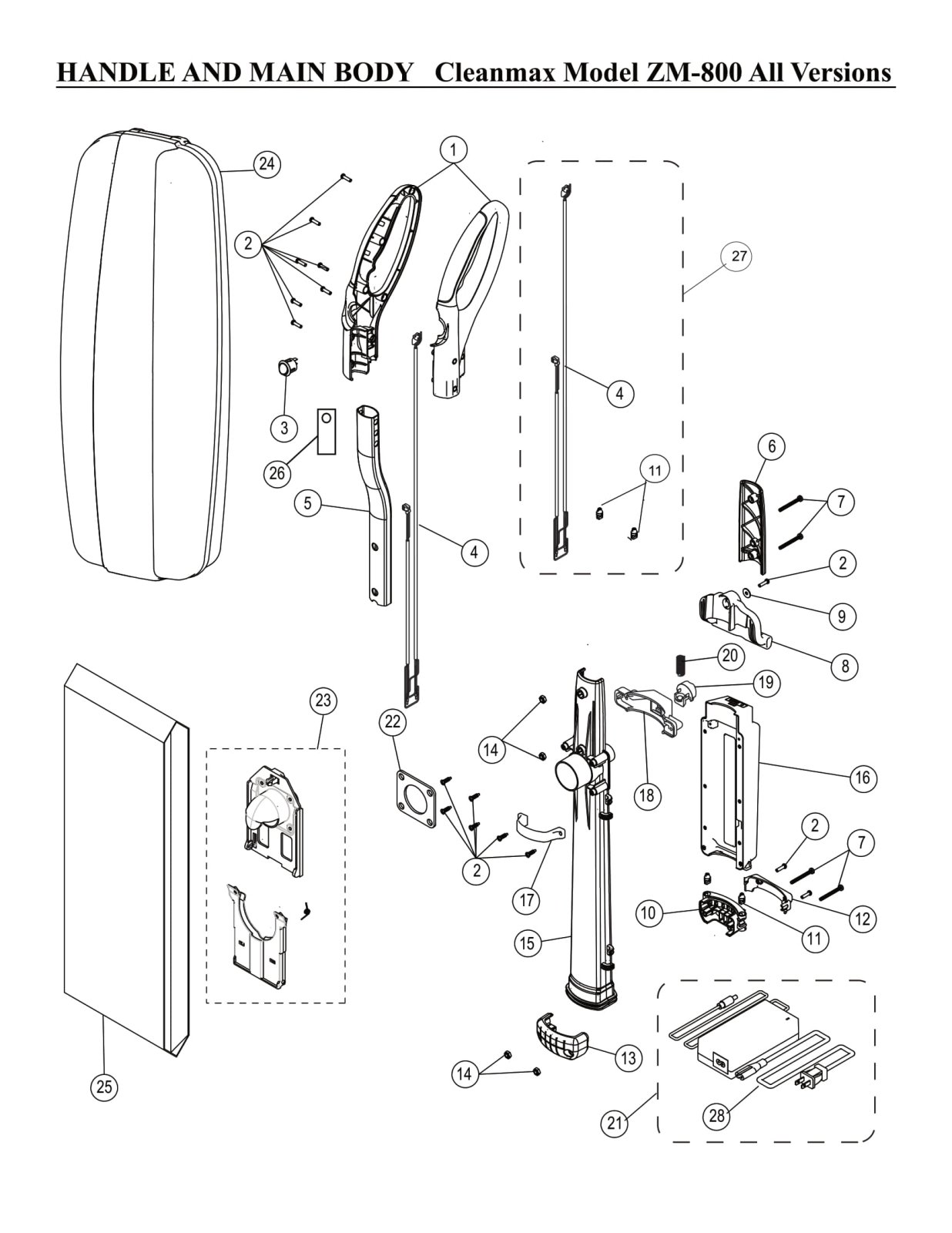 CleanMax Parts - Model ZM-800 / ZM-800.2 / ZM-800.4 / ZM-800.6 / ZM800.8 - Handle & Main Body
