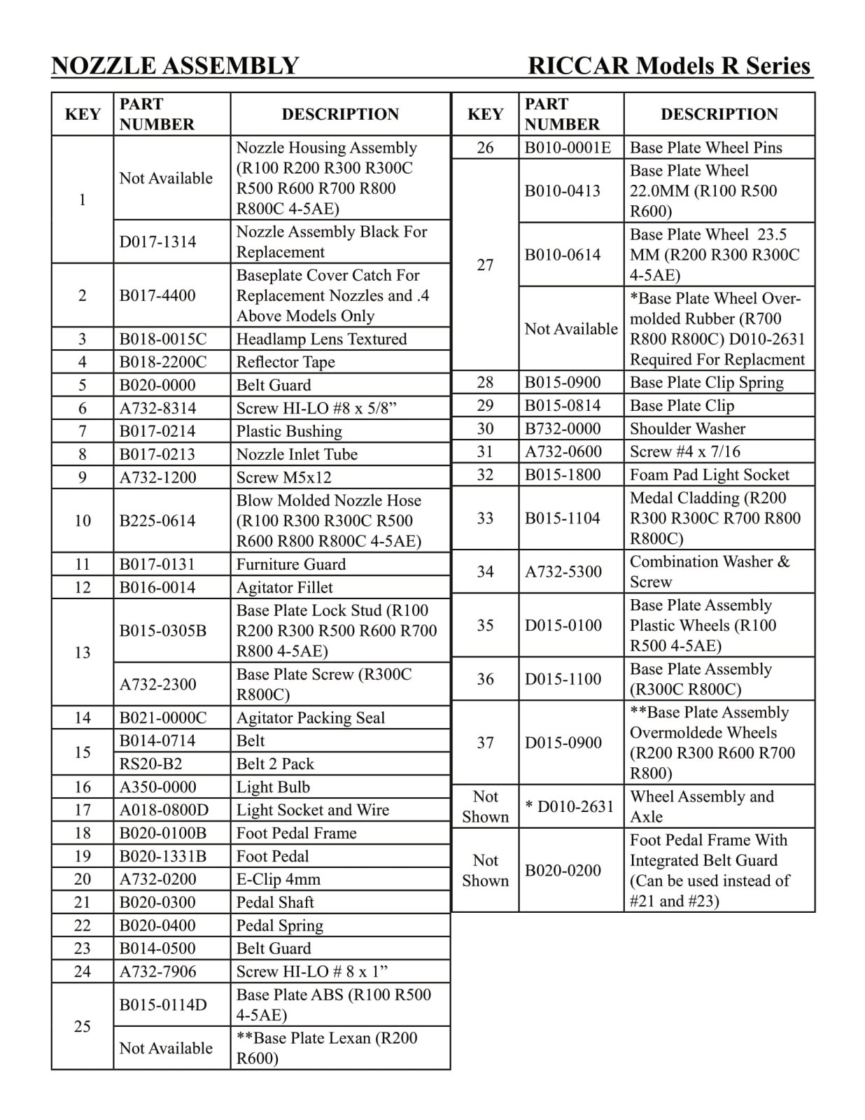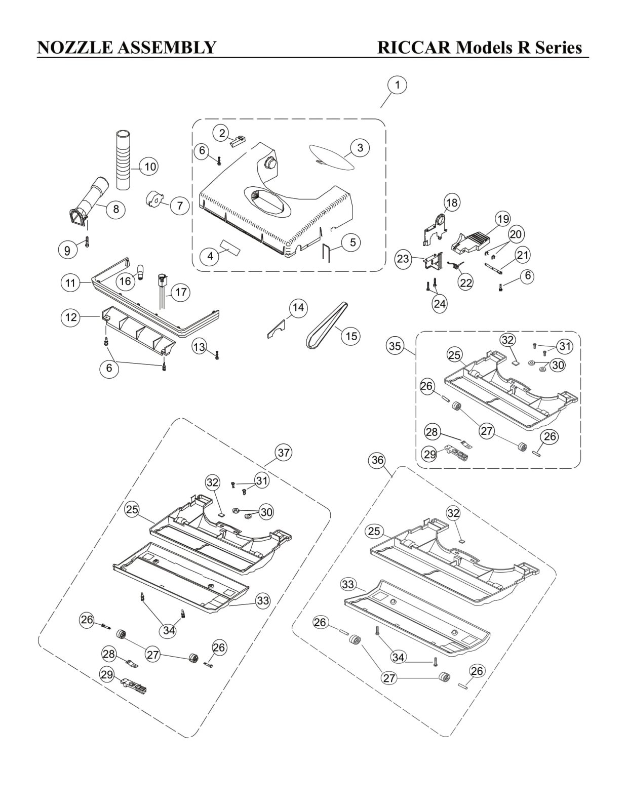Riccar Parts - Model 4-5AE / R100 / R200 / R300 / R300C / R500 / R600 / R700 / R800 / R800C - Nozzle Assembly