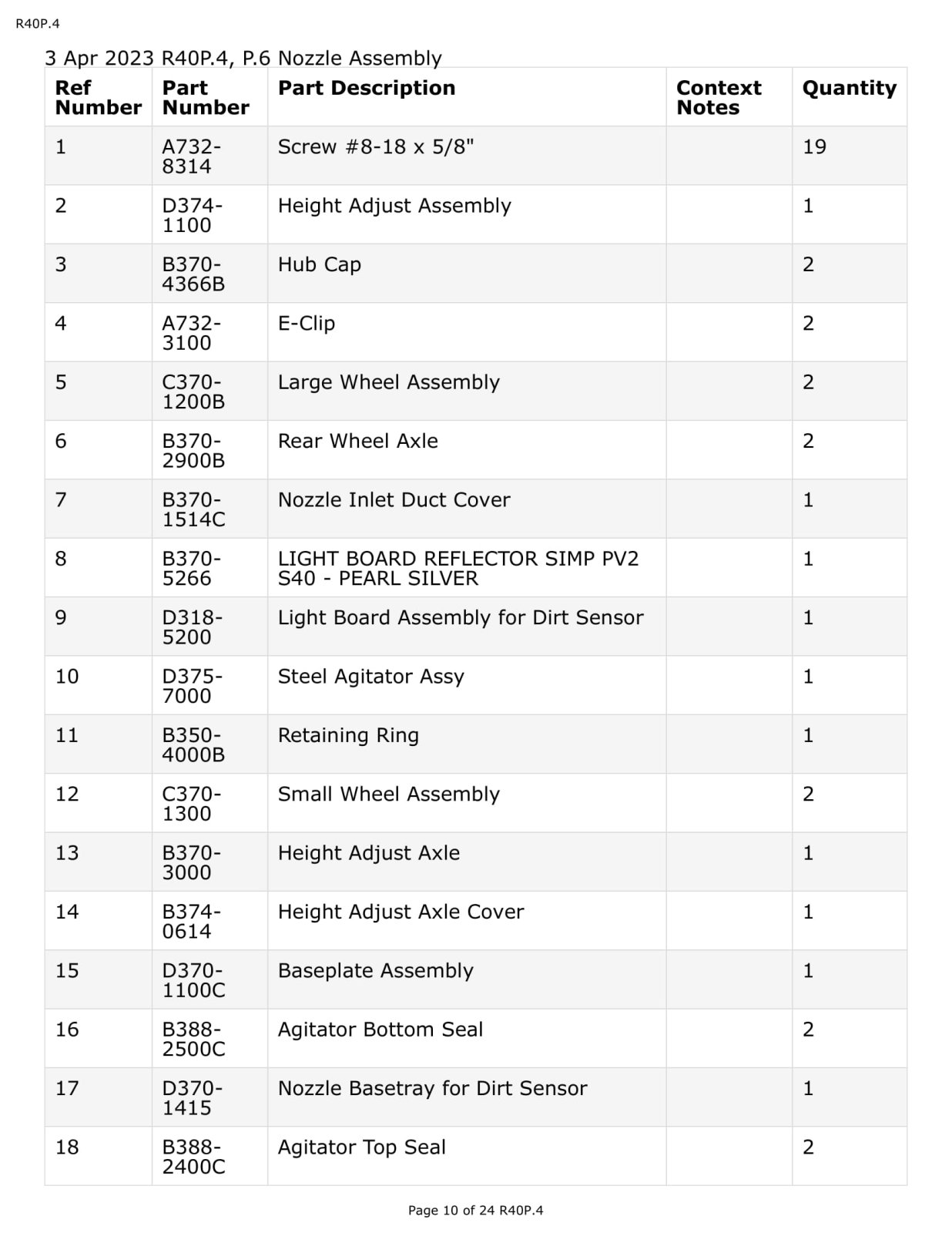 Riccar Parts - Model R40P.4 - Nozzle Assembly