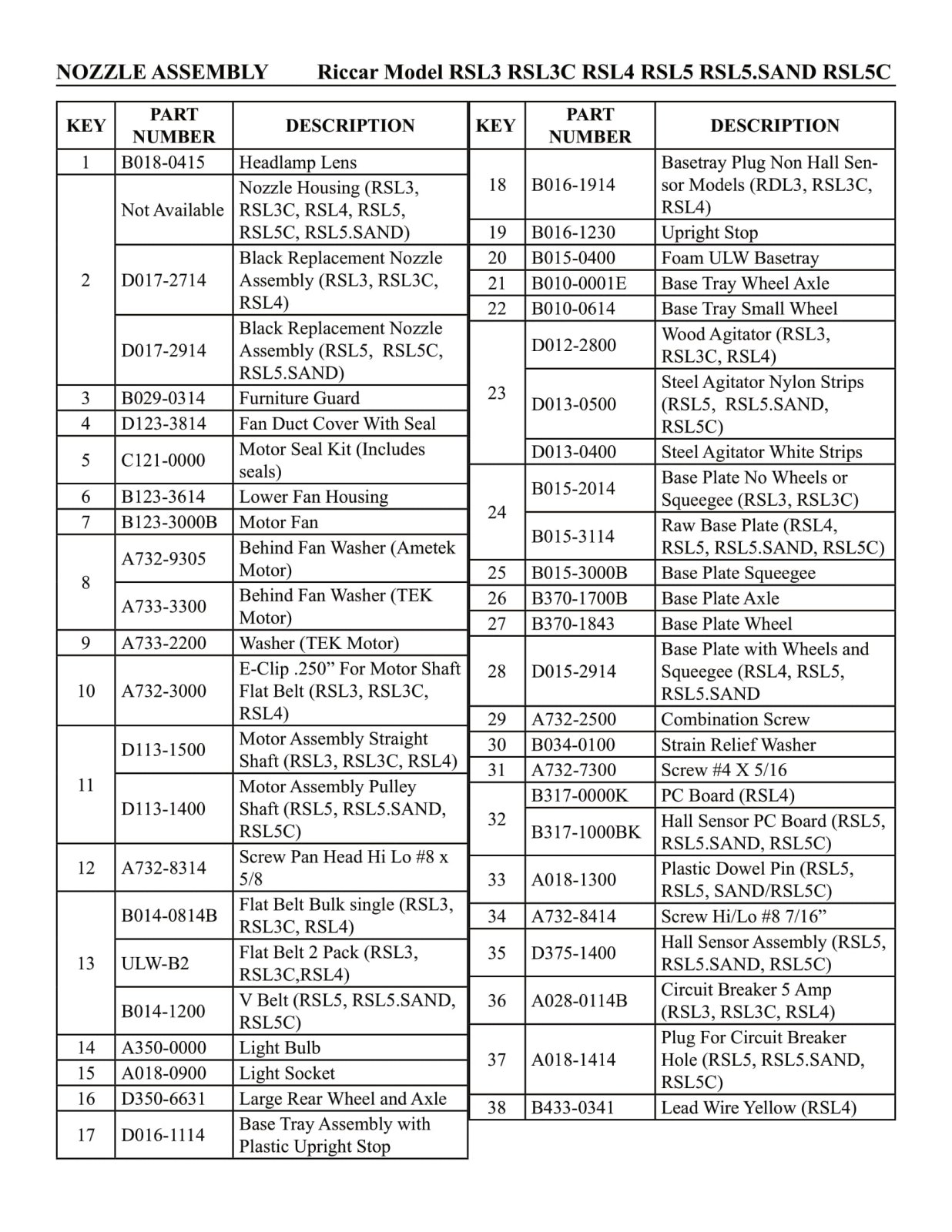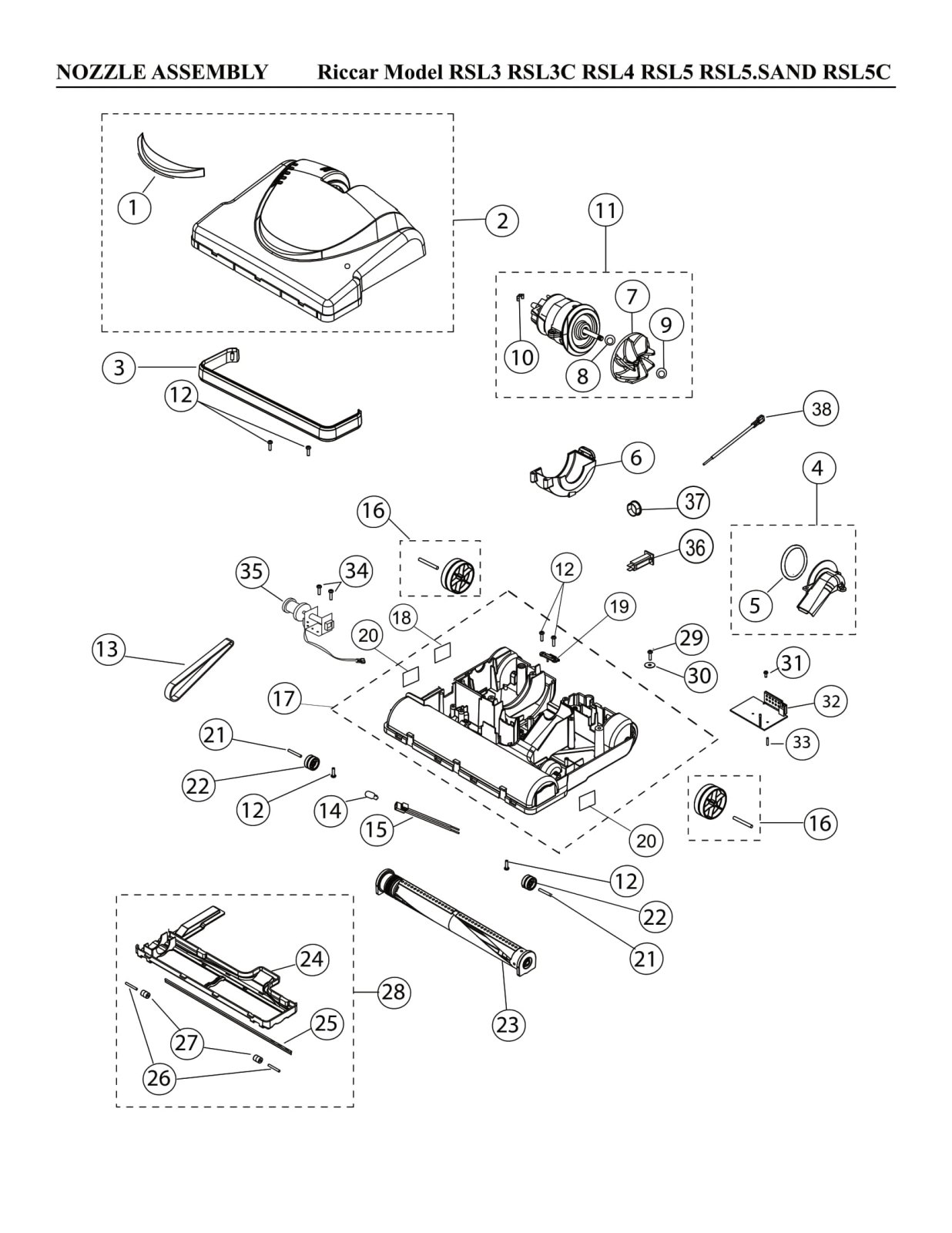 Riccar Parts - Model RSL3 / RSL3C / RSL4 / RSL5 / RSL5.SAND / RSL5C - Nozzle Assembly