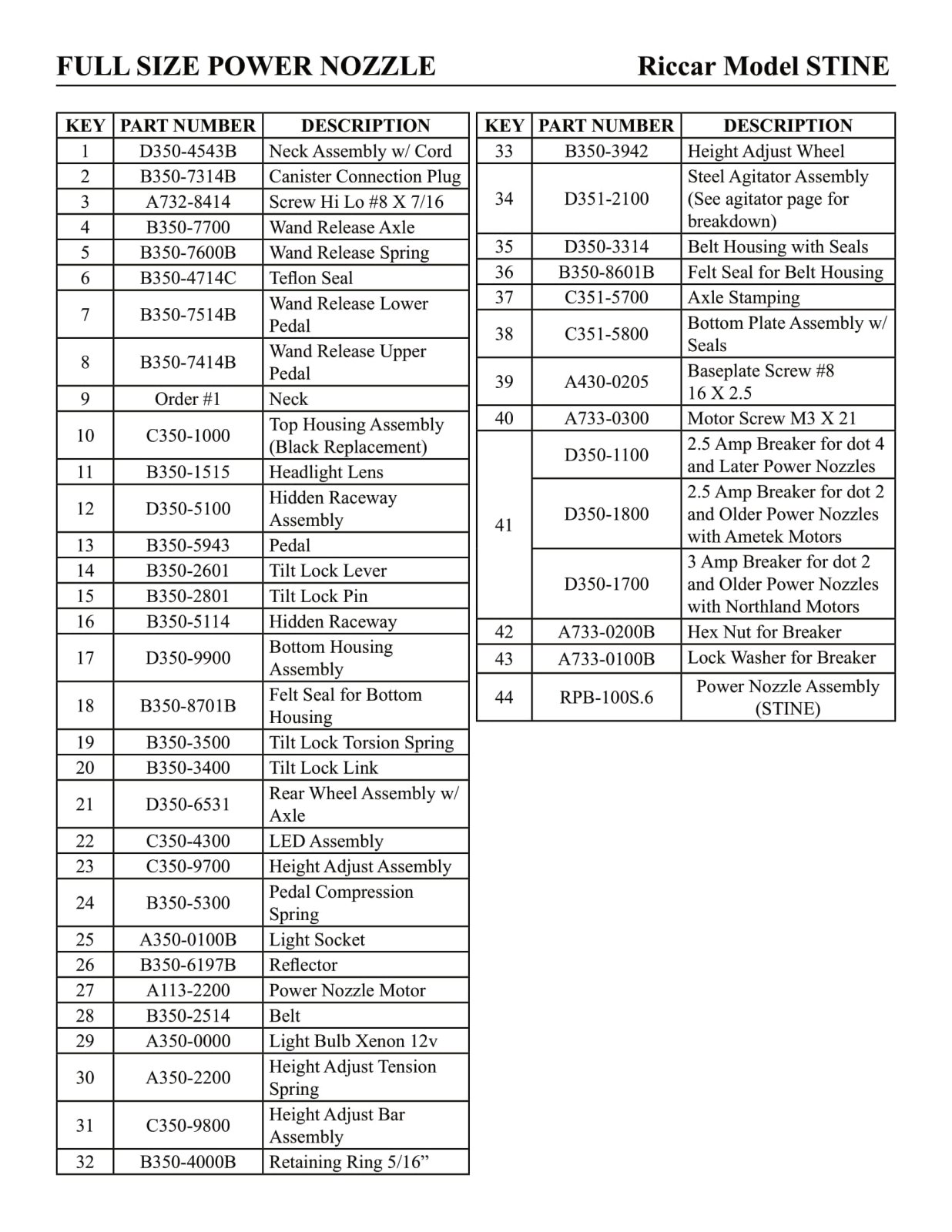 Riccar Parts - Model STINE - Full Size Power Nozzle