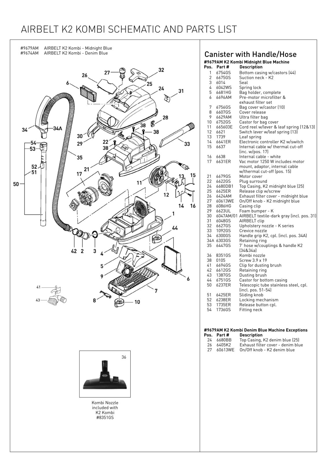 SEBO Parts - Model AIRBELT K2 Kombi - Canister with Handle & Hose