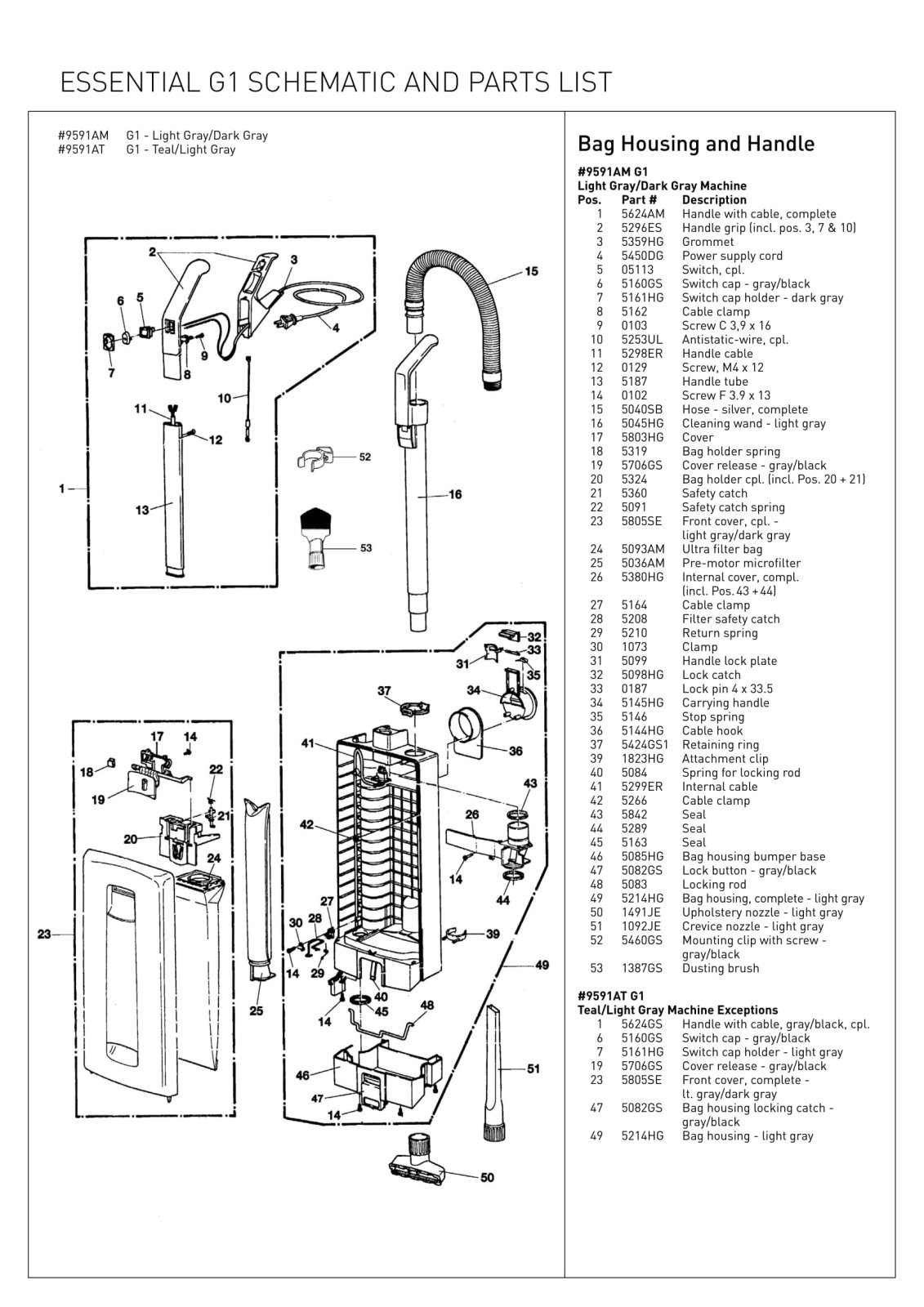 SEBO Parts - Model ESSENTIAL G1 - Bag Housing & Handle